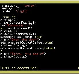 ComputerCraft 썸네일형 리스트형 [Computer Craft] 7. Computer Craft 란 무엇인가? 세날(http://capture4.tistory.com)님의 요청으로 작성된 게시물 입니다. Computer Craft 모드는 줄여서 CC 라고도 불리는 모드로써 컴퓨터크래프트 제작 페이지(http://www.computercraft.info) 에서 다운 받을 수 있는데요.이 모드는 LUA 언어를 기반으로 다루고 있기 때문에 사실상 접근하기가 매우 어려운 모드죠.조합법(http://computercraft.info/wiki/Recipes) 자체는 사실상 얼마 되지 않고 단순한편입니다. 컴퓨터크래프트는 컴퓨터와 터틀 프로그램을 지원하는데 무엇을 선택하느냐에 따라 자원을 채취 할수 있느냐 그렇지 않느냐의 차이점이 있죠. 개인적으로는 단점이라고 느낀바로는 각 월드간 프로그램이 공유가 되지 않는다는 점이죠.즉 .. 더보기 [MOD] Computer Craft(컴퓨터 크래프트) 상당한 전문(?)지식을 요구하는 컴퓨터 크래프트입니다.lua 언어를 기반으로 다루는 모드이기 때문에 이 모드를 쓰는데는 상당히 어려우리라 봅니다. 버전 1.4.6~1.4.7 버전 1.5 버전 1.5.1 버전 1.5.2 출처http://www.computercraft.info/ 설치 방법 마인크래프트 mods 폴더에 넣으시면 되요. 경로 : %appdata%\.minecraft\mods\ 더보기 [Computer Craft] 5. 키보드입력을 받아보자. 이번강좌는 Os.pullEvent 중 하나인 키보드 입력이에요. 키보드외에도 많으니 이벤트를 좀더 보시고 싶으시면http://computercraft.info/wiki/Os.pullEvent위 링크로 가서 보실수 있어요. 1. 강제종료를 막아보자.여태까지 문들은 CTRL+T(강제종료) 키나 CTRL+S(시스템종료) CTRL+R(시스템 재부팅)을 통해서 프로그램을 종료 시키고 소스를 볼 수 있었죠?이소스는 강제종료를 막아주는 강력한 기능을 수행해요. 본 필자도 왜 이게 막히는지 아직 잘 몰라요. 그냥 이걸 넣으면 강제 종료를 막을수 있다는것만 알아두세요. os.pullEvent = os.pullEventRaw 위 소스는 시스템종료나 시스템재부팅은 막지 못하지만, 나중에 그것도 막는 방법을 꼭 알려드릴게요 .. 더보기 [Computer Craft] 4. 비밀번호 문 예제2 지난 강좌때는 비밀번호 문을 작성했었는데 비밀번호가 소스상에 노출되는 단점을 안고 있었죠? 그래서 이번에는 소스상에 비밀번호를 넣지 않고 다른 파일 공간에 비밀번호를 가져와 사용하는 기법을 소개해요. 1. 파일을 개방하자. fs.open() fs api중 하나인 open은.. 파일을 읽기전용이나 쓰기전용으로 읽어 올 수 있어요. 물론 이 결과는 테이블형태로 저장이됩니다. 형태는fs.open("경로",[r 또는 w 또는 a])r : 파일을 읽기전용으로 개방한다.w : 기존에 같은이름으로 된 파일이 있으면 삭제하고 쓰기전용으로 개방한다.a : 기존에 같은이름으로 된 파일이 있으면 기존의 파일 데이터 끝으로 간후 쓰기전용으로 개방한다. r은 읽기전용이니, 이미 저장된 값을 가져오는것은 눈치 채셨겠죠.하지만 w.. 더보기 [Computer Craft] 3. 비밀번호 문 예제 주절주절하나하나 알려주는것보다 샘플 소스를 통해서 따라 치면서 배우게 하는게 어떨까 싶어서 중간 과정 싹 잘라내고 강좌를 하기로 변심했어요. 1. 변수를 지정하자.음. 어린애들도 본다고 가정해서 변수의 의미를 쉽게 설명해볼게요.초등학교때 배우는 산수문제중에서1+□=5이런 문제가 있잖아요?□ 는 4가 되겠지만, 답을 구하고자 하는게 아니고 □ 에 넣을수 있는 어떤 임의의 수를 변수라 할수 있어요.□+□=10 이러면 □ 에는 다양한 숫자를 넣을수 있죠?변수는 즉, 임의의 값을 넣을수 있는 어떠한 값이라고 개념을 정하도록해요.. 컴퓨터크래프트에서는 local 을 붙여서 변수를 정할수 있어요. local password = 'chick' -- password 라는 변수에 문자열 chick 를 대입 local d.. 더보기 [Computer Craft] 1. 레드스톤 신호를 제어해보자. 버전 : 1.481 서론 : 주절주절 강좌를 어떤 식으로 할지 고민했었는데요. 컴퓨터크래프트는 lua 언어사용하기 때문에 저도 이 모드를 처음 접했을때는 상당히 생소했었죠.기존에 lua 언어를 이미 접해 보신분들이라면 쉽게 사용할수 있지만, 그렇지 않은 분들이 많다고 여기기 때문이죠.실제로 제가하는 darkfate 모드서버에서도 컴퓨터크래프트가 있어서 lua 언어를 사용한 기술을 다양하게 응용을 해봤었죠.그러면 강좌 시작할게요. 1. 레드스톤 신호를 제어해보자. - redstone.setOutput 어드밴스드 컴퓨터를 우클릭해서 보면 윗 그림과 같은 화면이 보이죠. 어떤 파일이 있는가를 확인하기 위해선 ls(리눅스 명령어)를 치면 현재 저장된 파일의 리스트를 알 수 있어요. 초록색 글씨로 rom 이라는 .. 더보기 이전 1 2 다음